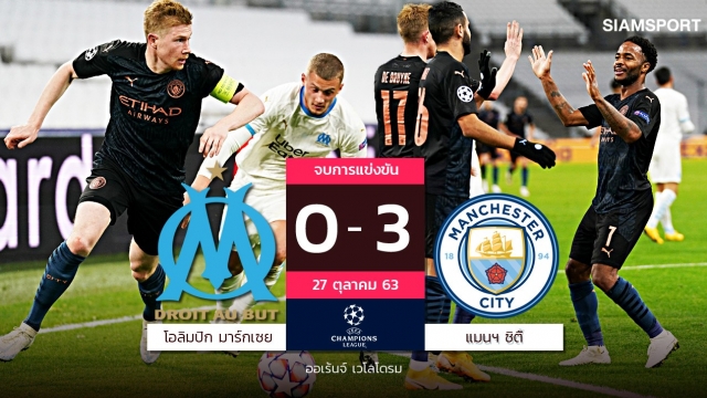 "เรือใบสีฟ้า" ของกุนซือ เป๊ป กวาร์ดิโอล่า เรียกความมั่นใจคืนสู่ทีมสำเร็จหลังบุกอัด โอลิมปิก มาร์กเซย 3-0 จากฟอร์มสุดฮอตของ เควิน เดอ บรอยน์ ที่มีส่วนร่วมกับเกมเยอะแถมจัด 2 แอสซิสต์ พาทีมเก็บ 3 แต้มสำคัญมี 6 คะแนนเต็มยึดจ่าฝูงกลุ่ม ซี ในศึกฟุตบอลยูฟ่าแชมเปี้ยนส์ลีก รอบแบ่งกลุ่ม คืนวันอังคารที่ผ่านมา สนาม : ออเร้นจ์ เวโลโดรม โอแอ็ม สตาร์ตรอบแบ่งกลุ่ม ชปล. ด้วยการออกไปแพ้โอลิมเปียกอส 0-1 และบุกชนะลอริยองต์ 1-0 ในเกมลีก เอิง เมื่อวันเสาร์ที่ผ่านมา กุนซือ อันเดร วิลลาช-โบอาช ไร้ปัญหาผู้เล่นบาดเจ็บและติดโทษแบน ส่วนทาง "เรือใบสีฟ้า" เริ่มต้นยูฟ่า แชมเปี้ยนส์ ลีก ด้วยการพิชิตปอร์โต้ 3-1 และเสมอเวสต์แฮม 1-1 ในเกมพรีเมียร์ลีกล่าสุด นายใหญ่ เป๊ป กวาร์ดิโอล่า ขาดตัวเจ็บอย่าง แฟร์นันดินโญ่, เบนฌาแม็ง เมนดี้ และ กาเบรียล เชซุส เปิดฉาก 2 นาที "เรือใบสีฟ้า" ทักทายก่อนจากจังหวะโยนทางขวาเข้าเขตโทษสุดท้ายบอลมาเข้าทาง เควิน เดอ บรอยน์ เก็บตกหน้าหัวกะโหลกตวัดด้วยขวาแฉลบแนวรับ มาร์กเซย หลุดออกหลังไป 15 นาทีผ่านเป็น แมนฯ ซิตี้ พับสนามบุกอยู่ข้างเดียวมาซัดตรงกรอบครั้งแรกจาก ฟิล โฟเด้น หลุดกับดักล้ำหน้าขึ้นมาทางซ้ายรับบอลจาก อิลคาย กุนโดกัน อัดด้วยซ้ายไปตรงตัว สตีฟ ม็องด็องด้า 2 นาทีต่อมา ทีมเยือน ออกนำจนได้จากความผิดพลาดของ วาล็องแต็ง รงชิเย่ร์ จ่ายบอลเสียหน้าประตูมาเข้าทาง เควิน เดอ บรอยน์ ทางฝั่งขวาก่อนปาดเร็วเข้าในให้ เฟร์ราน ตอร์เรส สอดมาชาร์จตุงตาข่าย นาทีที่ 22 จากลูกฟรีคิกทางฝั่งขวา เควิน เดอ บรอยน์ ครอสลึกเข้าเขตโทษเลยมาเสาไกลถึง เอมเมอริค ลาป๊อร์กต์ เติมมาโขกแต่โดนไม่เต็มบอลเบาไปตรงตัว สตีฟ ม็องด็องด้า ล้มตัวเซฟเอาไว้ได้ ก่อนหมดครึ่งแรก 15 นาที เควิน เดอ บรอยน์ ไปโดน อัลบาโร่ กอนซาเลซ ย่ำข้อเท้าร่วงลงไปในกรอบเขตโทษแต่ ผู้ตัดสิน ยังใจแข็งไม่ยอมเป่าให้จุดโทษ แมนฯ ซิตี้ นาทีที่ 35 แนวรับ มาร์กเซย พลาดเองเยอะ เลโอนาร์โด้ บาเลร์ดี้ ไปจับยาวโดน เฟร์ราน ตอร์เรส ฉกบอลเด้งก่อนมาเข้าทาง โอเล็กซานเดอร์ ซินเชนโก้ ซัดด้วยซ้ายเช็ดเสาไกลเหลี่ยมออกออกหลังไป โอกาสยิงตรงกรอบครั้งแรกของ เจ้าถิ่น ต้องรอถึงนาทีที่ 42 เป็น เนมานย่า ราดอนยิช พาบอลลากตัดเข้าในก่อนได้ช่องก้มหน้าตะบันด้วยขวาระยะร่วม 30 หลาบอลเรียดเบาตรงตัว เอแดร์ซอน หมดครึ่งเวลาแรก โอลิมปิก มาร์กเซย 0 แมนฯ ซิตี้ 1 นาทีที่ 55 มาร์กเซย เกือบตามตีเสมอเป็นจังหวะซัดด้วยซ้ายของ ฟลอริย็อง โตแว็ง ได้ช่องตะบันหน้าหัวหะโหลกบอลพุ่งเบียดเสียบเสาแรกไปติดมือ เอแดร์ซอน โมราเอส ปัดเอาไว้นิดเดีย